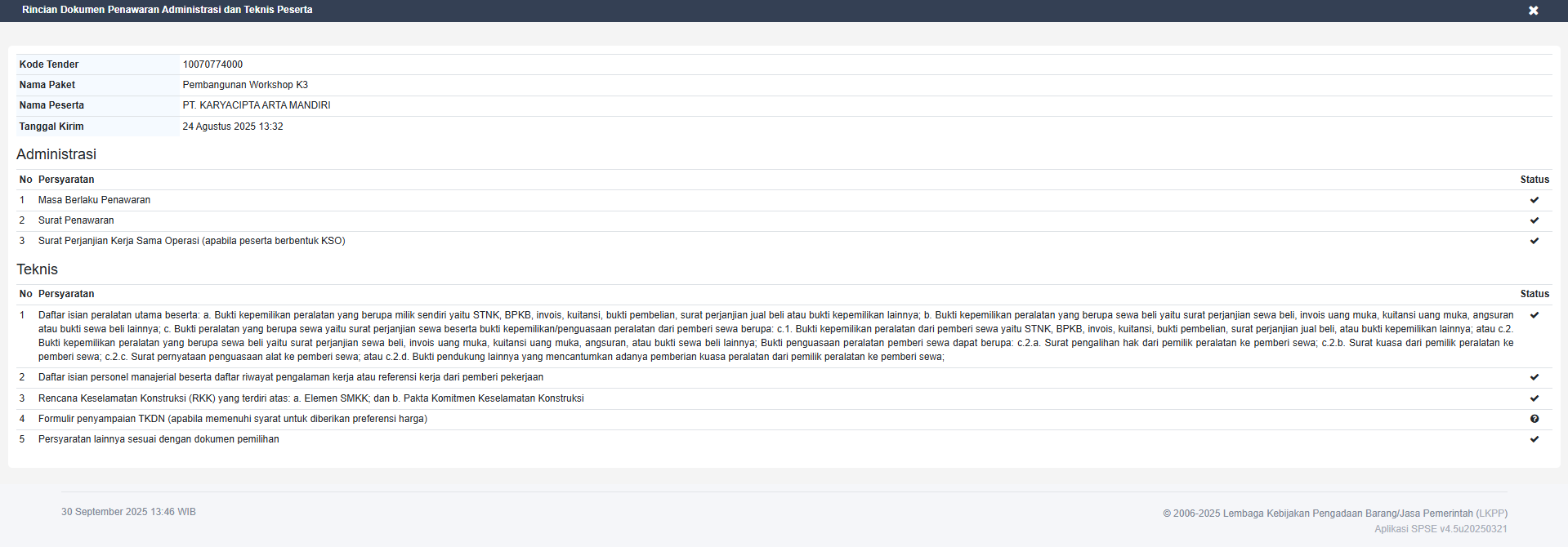 Berita Acara Sanggah dan Sanggah Banding Pembangunan Workshop K3 TIDAK DIPERSYARATKAN