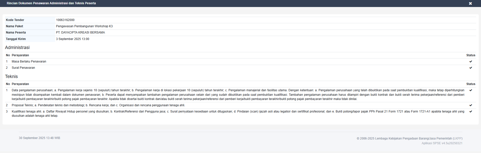 - 5. Dokumen Persyaratan Penyedia atau Lembar Data Kualifikasi